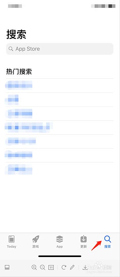 进入App Store界面后,点击右下角的搜索。
