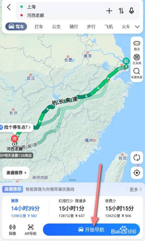 然后输入自己的起始地址和河西走廊并选择,如下图所示。