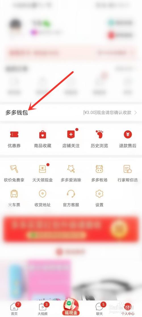 点击页面中间的【多多钱包】,即可打开多多钱包。