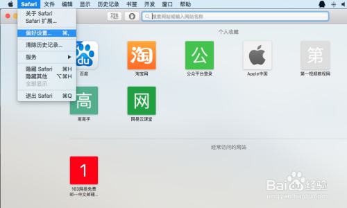 打开Safari,在Safari的菜单栏 点击“Safari--偏好设置”,如下图