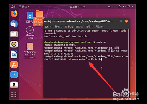 6,在命令行通过cd vmware-tools-distrib文件夹