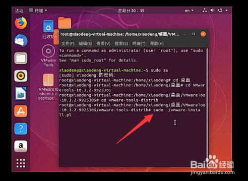 接着执行命令 sudo ./vmware-install.pl,如下图所示