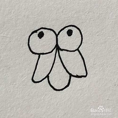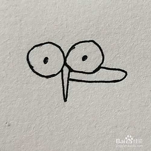 先画两个大大的圆形,里面点上眼球,是蚊子的大眼睛
