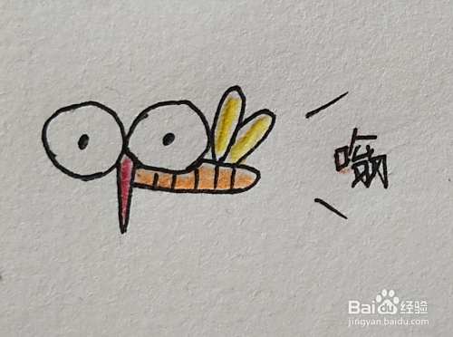 蚊子和苍蝇的眼睛画得大点,身体画得小点,会显得可爱一些
