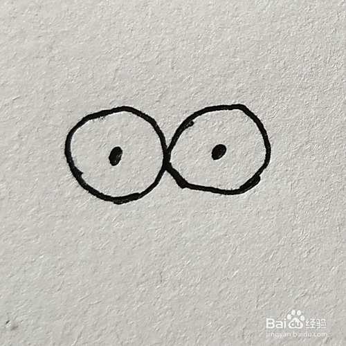 画上两个大大的圆形,点上黑色的眼珠,是往上看的哦