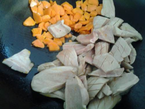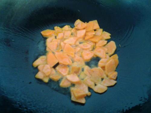 油锅烧热,先下胡萝卜