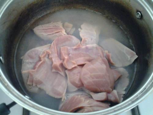 锅内烧开水后,倒入腰花抄一下,至变色捞出