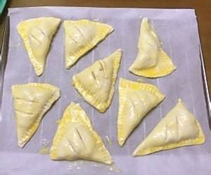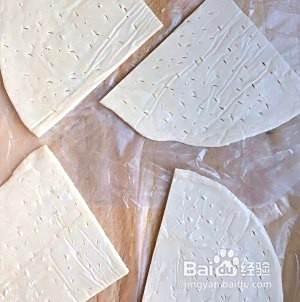 边上用叉子压平(一定要压紧),包好后可以在上面划几刀