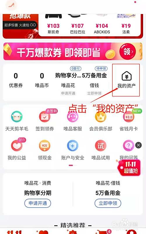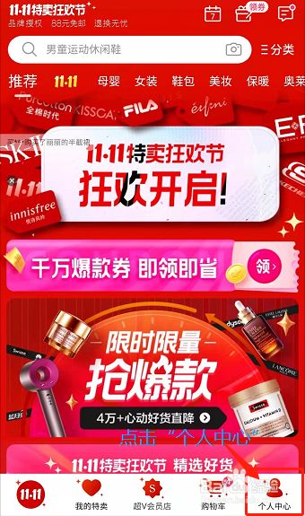 点击打开唯品会APP首页,点击下方的“个人中心”;