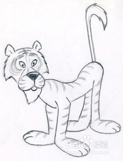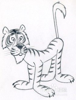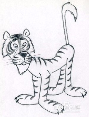 轻轻地勾勒出您的卡通老虎的条纹。当你在这张照片上看到的时候,只要轻轻地勾勒出它们,不要太用力推铅笔。如果您犯了错误,您仍然可以轻松擦除并纠正错误。