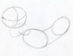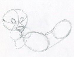 勾勒出这张照片上的嘴巴(枪口)部分。通过稍微弯曲的线条,用斜坡椭圆连接胸部椭圆。轻轻地使用你的铅笔。