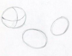 在您看到的图片上绘制三个椭圆。左边的椭圆是老虎的头。中间的椭圆是胸部,右边的是老虎的背部或臀部。 在左侧的头部 - 椭圆上绘制两条透视指南。水平指引可帮助您正确放置眼睛。垂直指南对确定鼻子是必要的。 轻轻地用铅笔,不要用力推。这些只是最初的指导方针(包括省略号),您将需要稍后删除它们。
