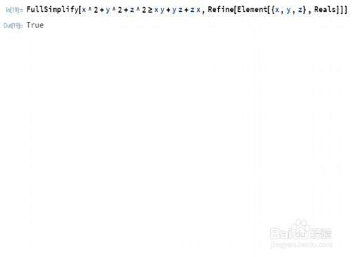 如果约定x、y、z都是实数,就会返回True,说明这个结论是对的。