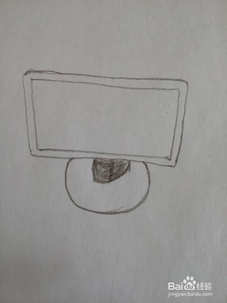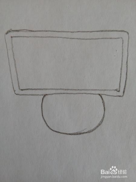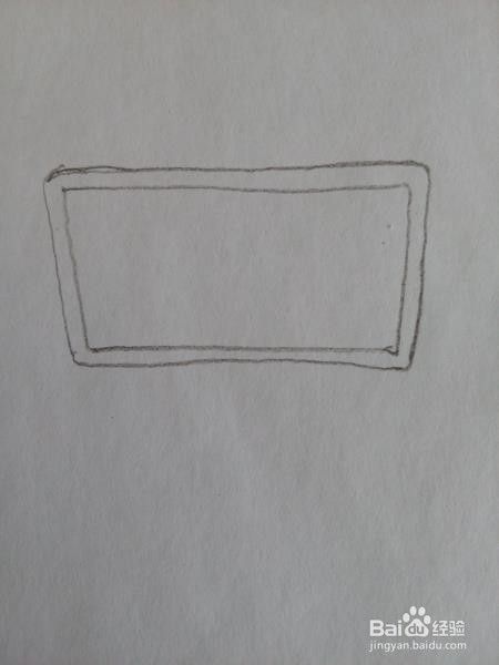 首先,我们用黑色的铅笔在纸上画出电脑的显示屏。画时先画一个长方形的形状来。如图;
