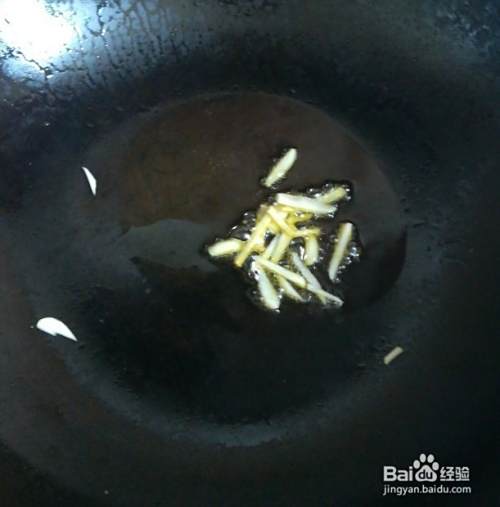 蛋饼盛碗里后,继续往锅里下油,油热后放入极少量的姜丝、蒜片。