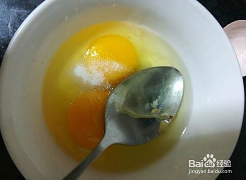 鸡蛋磕碗里后,放入适量的食盐后,将蛋液搅拌均匀,这一步要提前做好,否则盐没化开就下锅,后果可想而知。