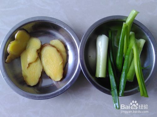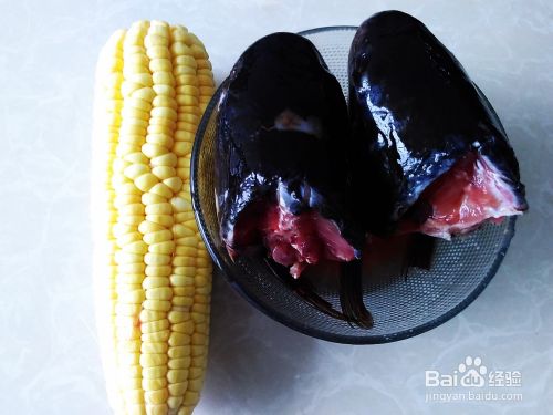 嫩甜玉米、草鱼头、姜片、香葱准备好。
