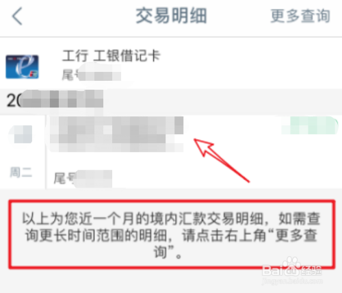 点击进入交易明细后 ,可以看到最近一个月的汇款详情,点击需要打印的汇款交易的电子回单。
