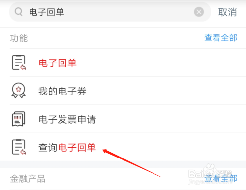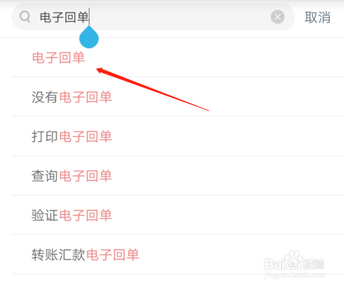 在搜索框中输入电子回单,然后点击电子回单。