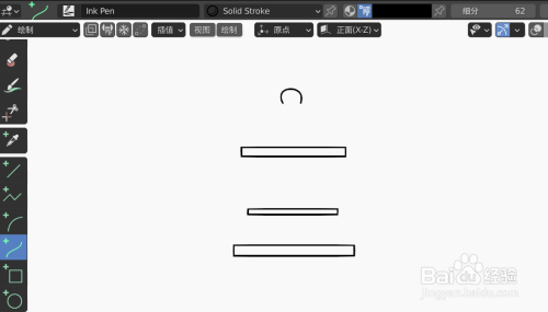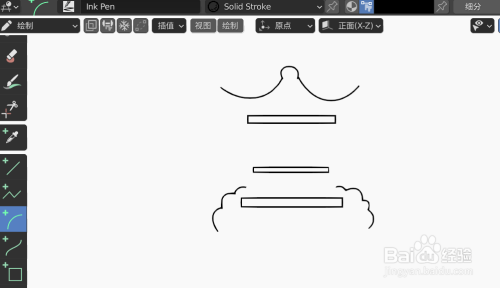 使用笔刷在画布上画两个圆弧和一个倒V,如下图