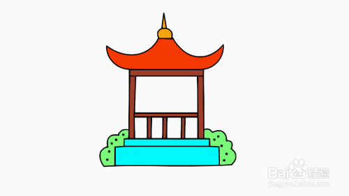 使用填充笔刷给模型填充成自己喜欢的颜色,一个漂亮的凉亭的简图模型就设计好了,如下图