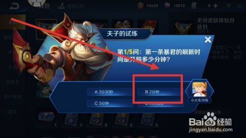 王者荣耀新增的答题获取金币和符文碎片的活动夫子的试炼,下面是回答问题“第一条暴君的刷新时间是开局多少分钟”的详细解答步骤。