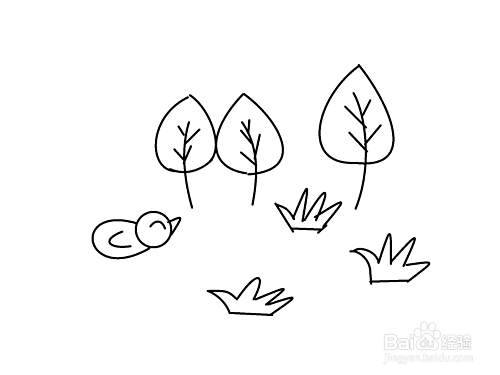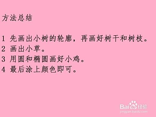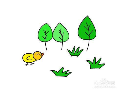 最后涂上颜色,这样小树小草和小鸡就画好了。