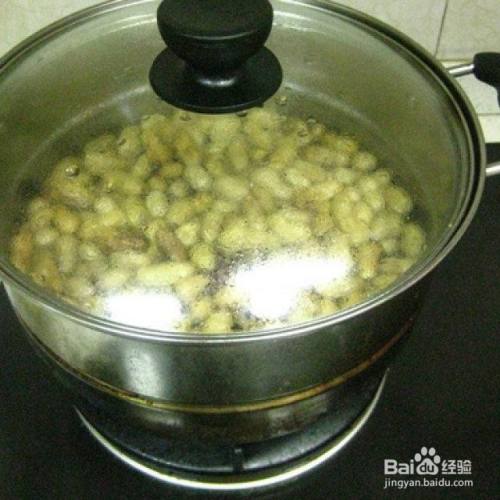 大约半个小时,水分收得差不多刚好淹没花生,关火,等它浸泡1个小时,凉了就可以开吃了。