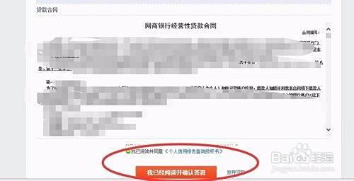 在“贷款申请”界面中需要填写一些贷款的基本信息,包括个人信息、还款的方式等,填写好后点击“我已经阅读并确认签署”。