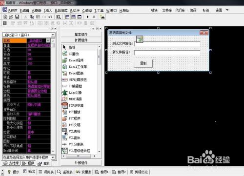 在窗口上绘制标签组件、编辑框组件、按钮组件、拖放控件各一个,调整好组件的位置和尺寸。如图: