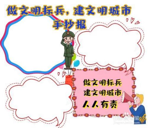 在做文明标兵,建文明城市手抄报的左下方画一个边框