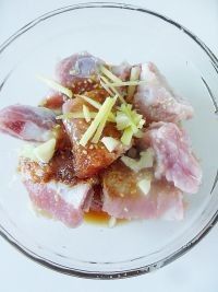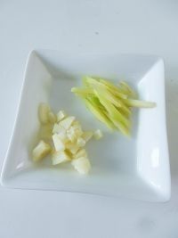准备好材料,排骨斩段后,用清水冲洗干净去血水,切好蒜末,姜丝。