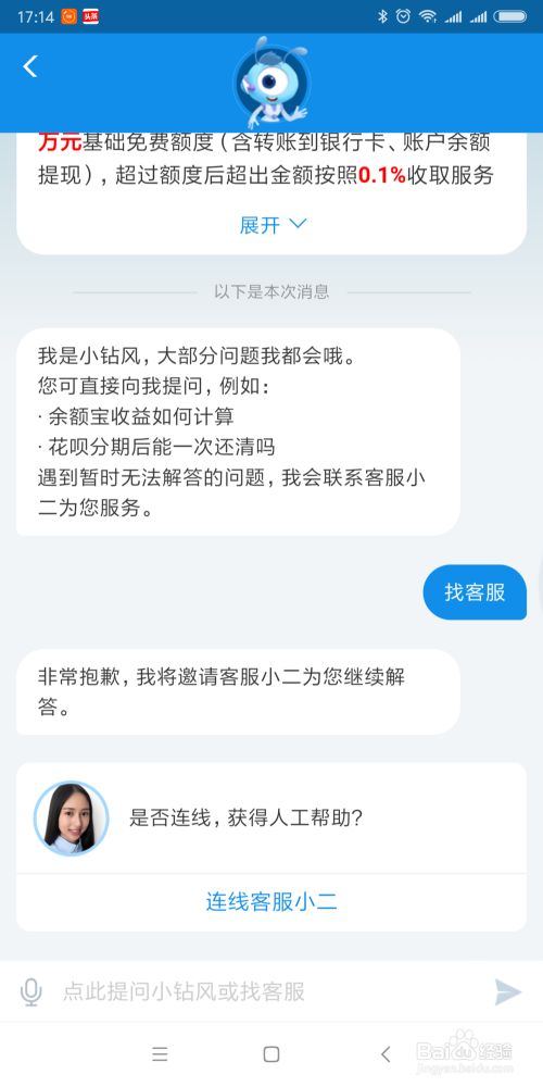 首先出来的必定是机器人,如果解决不了,直接输入找客服三个字,马上就弹出来了