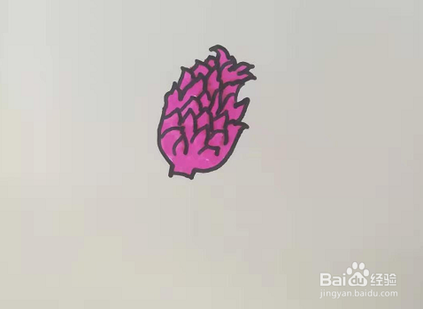 最后一步,就是给画好的火龙果涂上颜色,火龙果的颜色是介于紫色和红色之间的一种颜色,大家也可以根据自己的兴趣来涂,最终的效果图如下,有空来画一颗火龙果吧。