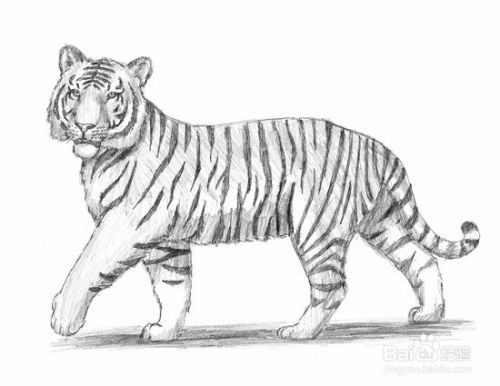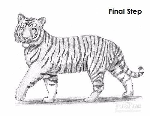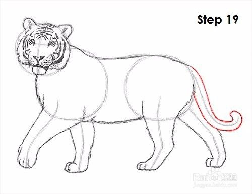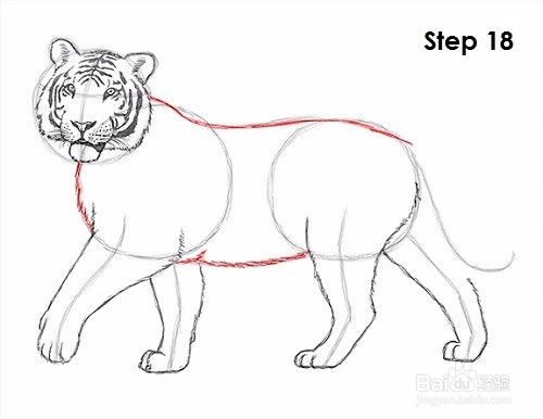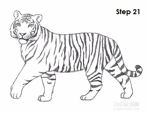 第18步:使用最初的线条作为指导,使用快速的短行程绘制老虎身体的其余部分。