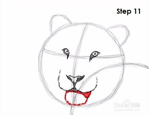 第十一步:将老虎的下颚画成带阴影的阴影,并在其下面用曲线作为下巴。