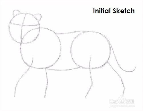 第3步:在头部内部画出两条相交线,这将有助于您放置虎的面部特征。