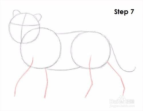 第7步:画出四条曲线(每圈下面两条)作为虎腿的导向。