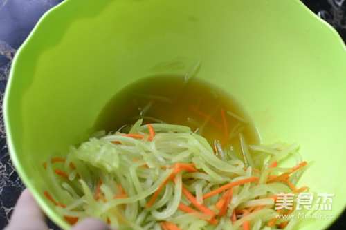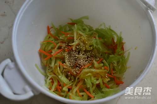 6沥干放入盆中,将其他调料放入,最后浇上一大勺的热油炝拌,冰箱冷藏半小时食用味道更佳END