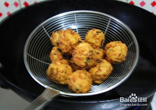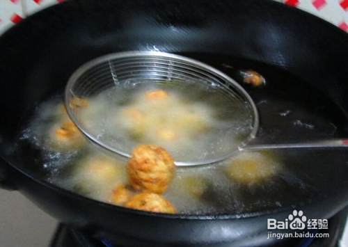 转小火,油温控制在6成热,将丸子炸制金黄捞出沥油即可。