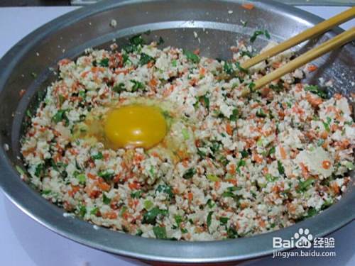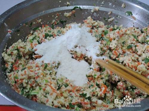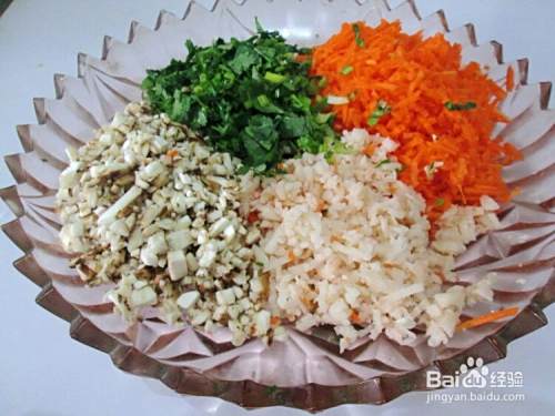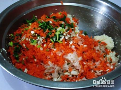 加入胡萝卜 香菜 莲藕 香菇碎。