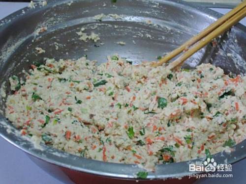 加入面粉至所有材料粘稠度刚好可以挤成丸子。