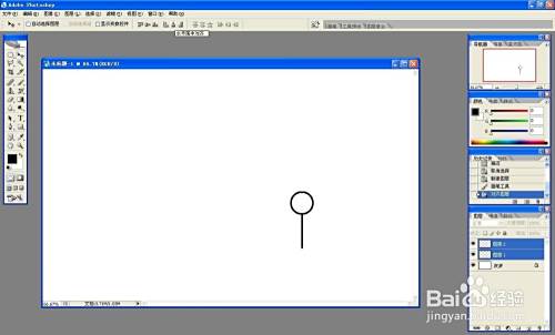 新建图层,按shift键用画笔画一条直线,作为小人的躯干,选中头、躯干图层,水平居中对齐。