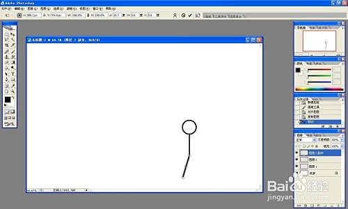 新建图层,按shift键用圆选框画一个正圆,填充为白色,描黑色的边,作为小人的头。
