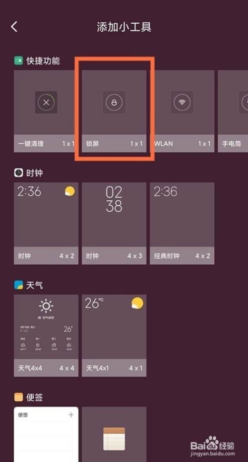 再点击【锁屏】,将其添加到桌面。