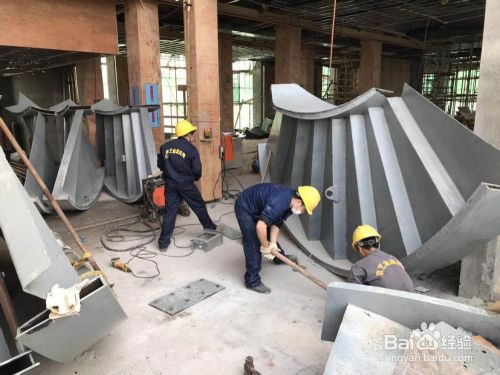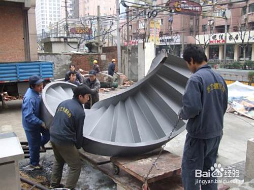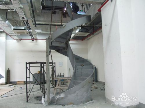 根据图纸数据对材料进行切割、折边、弯圆等工序。材料加工的过程中需严格按照图纸上做标注的尺寸,如随意加工,可能会对楼梯造型的准确度造成一定的影响。