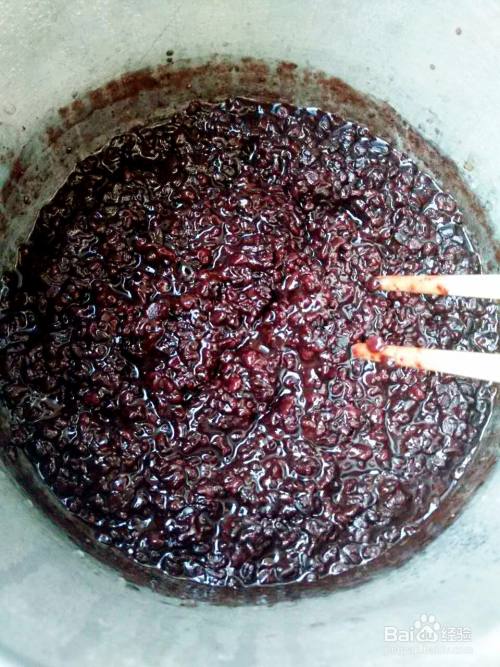 黑米泡好后,把水滤出,这时候我把泡好黑米过秤,是140g(为了弄一个菜谱,我一步一步都很仔细),然后加600g水熬煮成粘稠的粥,(水开后关成最小的火,最后阶段勤看着点锅,别糊了),我不敢用高压锅,下次用高压锅或者电饭锅试试