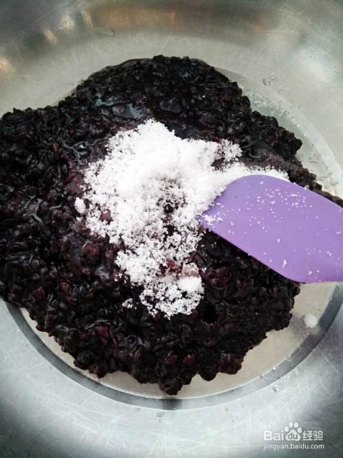 煮好粥后,先闷10分钟,再把黑米粥倒入面盆,加入白糖,搅拌