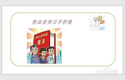 第三步,在图框右上角插入与“宪法宣传日手抄报”相关的宪法宣传日手抄报图标;