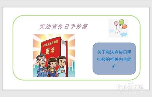 第五步,在图框右下角插入文本,对“宪法宣传日手抄报”进行详细介绍。